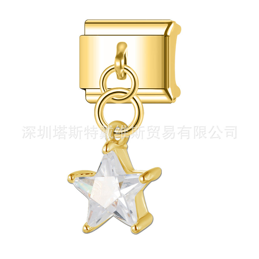 Charm italien COQUILLAGE ET ETOILE DORE BLEU